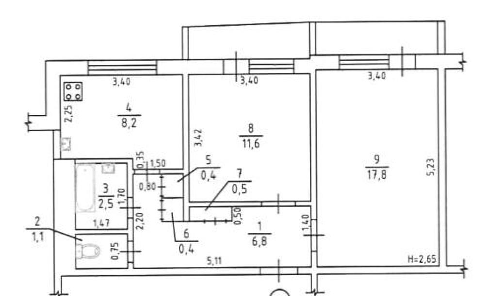 Количество комнат2Площадь кухни8