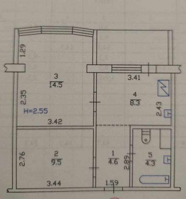 Количество комнат1Площадь кухни9