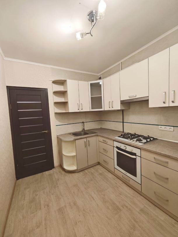 Большая просторная кухня 8м, встроенная газовая варочная поверхность, духовка и вытяжка. Остаётся встроенная кухня.
