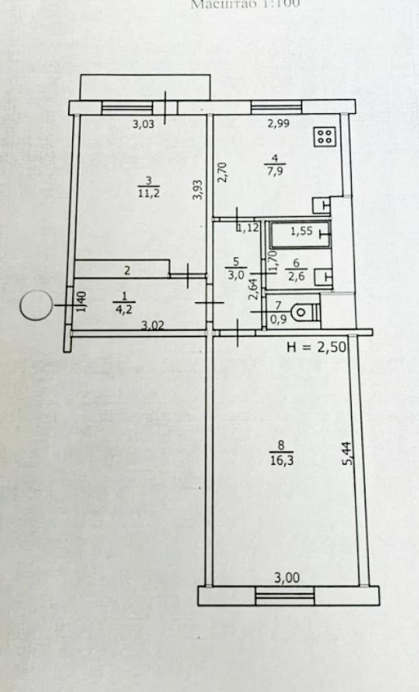 Количество комнат2Площадь кухни8