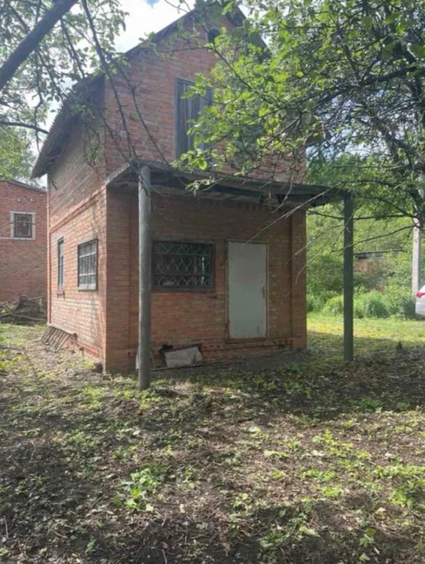 Дачный домик, кирпичный, двухэтажный на участке 12 сотых. В доме незаконченный ремонт. На участке своя скважина, фруктовый сад.